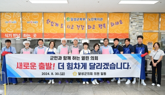 달성군의회는 지난달 30일 달성군 북부노인복지관을 찾아 배식봉사를 펼쳤다.이날 어르신들께 인사를 드리고 노인복지관 이용의 애로사항 등을 청취했다.김은영 의장과 군의원들은 점심식사 배식 봉사 후, 봉사자들과 복지관 관계자들을 격려하고 감사의 뜻을 전했다.김은영 달성군 의회 의장은 “올 여름은 역대 최장의 폭염을 기록하는 등 유난히 더운 날씨가 이어지고 있어 어르신들의 건강이 염려된다”며 “노인복지관을 이용하는 어르신들이 건강하게 여름을 보내시는데 조금이나마 도움이 되었기를 바란다”고 말했다. 한편 달성군의회는 제9대 후반기 의정활동 시작 이후, 7월에 이어 두 번째로 배식봉사 활동을 펼치며 따뜻한 사랑 나눔을 실천하고 군민의 애로사항을 청취하는 열린의정을 구현하고 있다.