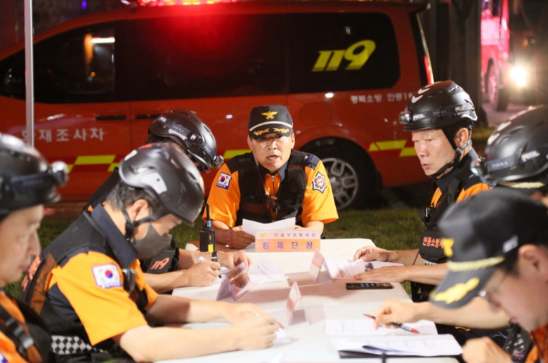 안동소방서는 지난 2일 19시경 안동시 성곡동 소재 안동문화관광단지 유교랜드에서 대형 재난 상황 발생 시 소방의 신속하고 효율적인 대응능력 강화를 위해 긴급구조통제단 훈련을 실시했다. 긴급구조통제단이란 재난이 발생할 우려가 현저하거나 재난이 발생했을 때 국민의 생명·신체 및 재산을 보호하기 위하여 긴급구조기관과 긴급구조지원기관이 하는 인명구조, 응급처치, 그 밖에 필요한 모든 긴급한 조치를 지휘하는 임시 조직이다. 훈련은 유교랜드 내 원인미상의 화재 발생, 화재의 영향으로 1층 어린이 체험실이 무너지고 다수의 시민이 부상 및 고립된 상황을 가정하여 ▲재난발생 ▲선착대 활동 ▲유관기관 상황전파 ▲임시의료소 운영 ▲긴급구조통제단 가동 ▲현장지휘소·현장응급의료소 설치 ▲상황보고 ▲상황판단 회의 ▲언론브리핑 ▲통합지휘 회의 등의 내용으로 진행됐다. 김난희 안동소방서장은 “이번 훈련은 사전 예고 없이 야간 불시에 진행된 만큼 안동소방서 긴급구조통제단의 역량을 확인 할 수 있는 뜻깊은 시간을 됐다”며 “앞으로도 지속적인 훈련을 통해 부족한 부분을 보완해 나가며, 항상 시민의 안전을 지키는데 최선을 다하는 안동소방서가 되겠다”고 했다.