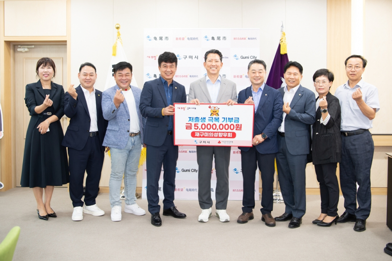 재구미의성향우회(회장 이상헌)는 9일 구미시에 저출생 극복을 위한 성금 500만 원을 전달했다. 이 성금은 경북도의 저출생 문제 해결과 출산 장려 사업에 쓰일 예정이다.