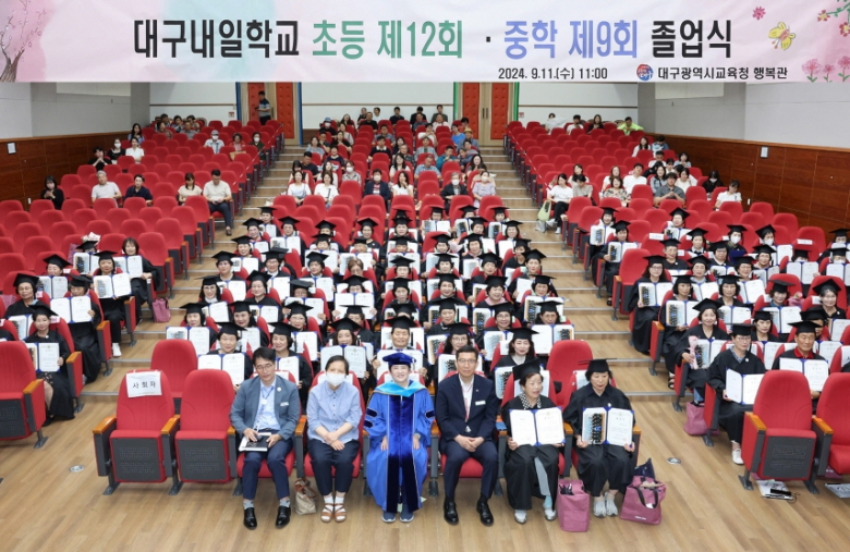 대구에서 배움의 기회를 놓친 112명이 만학의 꿈을 이뤘다.대구교육청은 11일 교육청 행복관에서 `대구내일학교` 졸업식을 열었다.대구내일학교는 전국에서 유일하게 교육청이 운영하는 성인문해교육 프로그램으로, 이날 졸업식에는 지난해 10월 입학해 1년 과정을 마친 초등과정 졸업생 42명, 2022년 10월 입학해 2년 과정을 마친 중등과정 졸업생 70명 등 112명이 참석했다.졸업생 가운데 최고령 학습자는 1933년생인 91세, 최연소 학습자는 1967년생인 57세이며, 평균 연령은 70세다.중등과정 졸업생 김필주 씨(80)는 "내일학교에 입학하기 전에는 `선생님`을 불러보지 못했는데, 내일학교에서 와서 마음껏 불러봤다. 이제 은행에 가도 떨지 않고 이름과 금액을 기재할 수 있다"며 "배움의 길을 열어주신 분들께 감사드린다"고 말했다.대구내일학교는 이번 졸업생을 포함해 초등과정 1093명, 중학과정 823명을 배출했다.