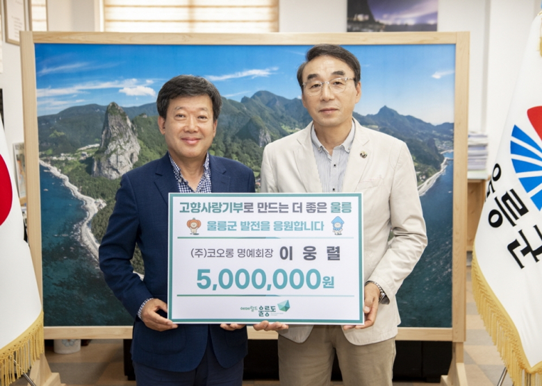 울릉군은 기록적 집중호우에 민·관·군 남녀노소 모두 구슬땀을 흘리며 응급 복구에 나선 가운데 ㈜코오롱 이웅열 명예회장이 고향사랑기부금 500만원을 쾌척했다고 밝혔다. 코오롱 그룹 제3대 회장을 지냈던 이웅열 명예회장은 1995년 코오롱 그룹 회장직에 올라 1990년대 후반, 젊은 기업주로서 활발한 활동을 해 재계에서 좋은 평가를 받아온 기업인으로 2018년 회장직을 사퇴하며, 현재 코오롱 명예회장으로 활동하고 있다. 이웅열 명예회장은 울릉군에 고향사랑기부제 최고한도액인 500만원을 쾌척하며 “집중호우로 피해를 본 울릉군에 고향사랑기부금으로 마음을 전하고 싶었다”고 말하며, “고향사랑기부제로 모인 모금액이 울릉도를 위해 의미있는 곳에 사용되기를 바란다”고 전했다. 남한권 울릉군수는 “울릉도에 대한 깊은 사랑에 고개 숙여 감사드린다”며 “울릉군 고향사랑기부제에 더욱 많은 분들이 관심을 갖고 지켜봐주시기를 부탁드린다”고 말했다.정윤환 기자