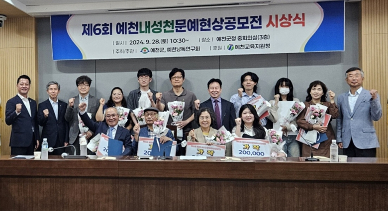 제6회 내성천문예현상 공모전 시상식이 9월 28일(토) 10시 30분 예천군청 3층 중회의실에서 열렸다. 이번 공모전은 5월 1일부터 7월 31일까지, 1인당 시 3편 이상 공모를 받았다.