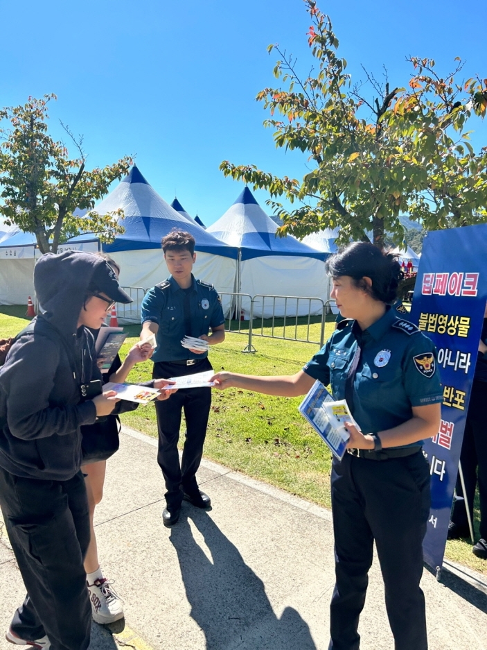 칠곡경찰서는 지난 4일 칠곡군에서 열린 낙동강평화축제에서 군민들을 대상으로 딥페이크 성범죄, 학교폭력 등 예방을 위한 유관기관 합동 캠페인을 실시했다. 이번 캠페인은 최근 사회적으로 문제가 되고있는 딥페이크 성범죄와 학교폭력 등 예방과 청소년 선도·보호를 위해 마련됐으며, 칠곡 낙동강평화축제가 진행된 칠곡보 생태공원 내 부스에서 칠곡경찰서 여성청소년계, 칠곡 꿈드림센터(학교밖청소년센터), 칠곡교육지원청 Wee센터 등이 함께 캠페인을 진행했다. 칠곡경찰서는 축제를 구경하기 위해 방문한 군민들을 대상으로 다양한 홍보물품을 나눠주며 집중 예방활동을 펼쳤고, 특히 딥페이크 성범죄와 관련한 대응수칙 등에 대해 적극 홍보했다. 칠곡경찰서는 “청소년들이 안전한 환경에서 건강하게 성장할 수 있도록 사회적약자 보호를 위한 예방 활동에 힘쓰겠다.”고 밝혔다.