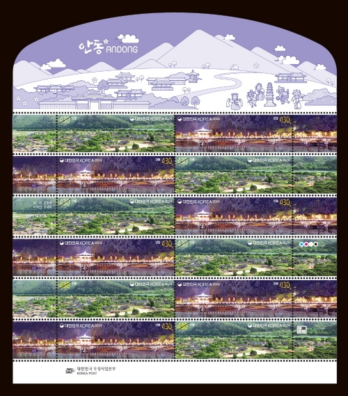 과학기술정보통신부 우정사업본부(본부장 조해근)가 관광거점도시 안동의 아름다운 낮과 밤을 담은 기념우표 40만 8,000장(전지 34,000장)을 오는 18일 발행한다고 밝혔다.우정사업본부는 ‘한국 도시의 낮과 밤’이라는 주제로 매년 기념우표 시리즈를 발행하고 있다. 지난해 첫 번째로 발행한 서울시에 이어, 두 번째 도시로 관광거점도시인 안동시가 선정됐다.기념우표에는 안동을 대표하는 문화유산이자 관광지인 안동하회마을의 전경과 야경 명소로 유명한 월영교의 아름다운 모습이 담겨있다. 특히 이 시리즈로 발행되는 기념우표는 일반적인 우표와는 다르게 가로 60mm, 세로 21mm 크기로, 가로로 긴 형태로 제작돼 두 관광지의 매력을 제대로 담아내고 있다.우정사업본부는 기념우표 발행과 더불어 안동시와 대표 관광지 2곳에 대한 한글과 영문으로 간단한 설명을 담은 안내 카드도 함께 전달하고 있어 안동 관광 홍보 효과가 클 것으로 기대한다.안동 기념우표는 10월 18일(금)부터 가까운 총괄우체국을 방문하거나 인터넷 우체국(www.epost.go.kr)을 통해서 구매할 수 있다.