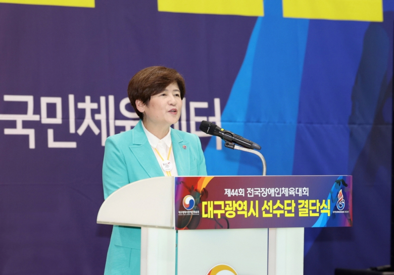 강은희 대구교육감이 ‘제44회 전국장애인체육대회 결단식’에 참석, 대구선수단을 격려했다.결단식은 10월 18일 대구장애인국민체육센터에서 열ㄹ겼다.대회는 25~30일까지 경남 김해 일대에서 열리는데 대구에서는 고등부 학생 19명을 포함, 23개 종목에 총 392명의 선수가 출전한다.결단식은 대구 대표로 출전하는 모든 선수들의 꿈과 열정을 응원하고, 대회 기간 동안 안전하고 건강하게 경기에 임할 것을 다짐하는 자리로 마련됐다.강은희 교육감은 “끊임없는 노력과 열정으로 훈련에 매진해 온 선수들과 지도자들의 노력에 격려의 박수를 보내며, 대회에서 기량을 마음껏 발휘하고, 값진 추억을 만들어 오길 바란다”고 격려의 말을 전했다.