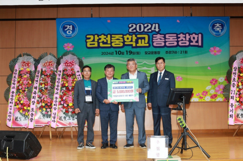 예천군에서 예천사랑기부제에 참여하는 출향인들의 행렬이 이어지고 있다.감천면 출신인 기양금속 배명직 대표는 지난 19일 감천중학교 총동창회에서 예천사랑기부금 500만 원을 전하며 고향사랑에 동참했다.배 대표는 “주변에 예천사랑기부제 홍보를 계속해 나갈 계획이며, 고향 예천의 발전을 위해 앞으로도 다양한 분야에서 적극적으로 협조하겠다.”고 말했다. 김학동 군수는 “예천군 발전을 위해 동참해 주시는 모든 분께 진심으로 감사드리고, 기부금은 지역 발전과 복지 증진을 위해서 소중하게 사용하겠다.”고 말했다. 고향사랑기부금은 본인의 주소지를 제외한 전국 지방자치단체에 기부할 수 있으며, 기부자는 세액공제 혜택과 기부금의 30% 범위 내 답례품을 제공받는다. 기부를 희망하는 경우 ‘고향사랑e음’ 온라인 플랫폼 또는 전국 농협 지점을 직접 방문해 기부할 수 있다.송명주 기자