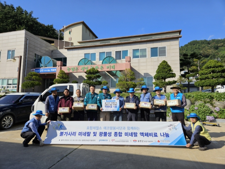 포스코에코팜봉사단과 (사)포항시자원봉사센터는 지난달 30일 울릉군농업기술센터에서 불가사리 미네랄 액체비료 전달식을 가졌다.이날 포스코에코팜봉사단은 불가사리 미네랄 액체비료 240병(1리터), 192병(0.5리터)과 광물성 종합 미네랄 액체비료 240병(1리터)을 울릉군농업기술 센터에 기부했다.포스코에코팜봉사단은 포항시 북구 기계면에서 감자, 옥수수, 대파, 쪽파 등 농작물을 재배해 지역사회 나눔 활동을 전개해 왔다. 또한 해양환경정화활동 재능봉사단인 클린오션봉사단이 포항 영일만 해역에서 수거한 불가사리를 활용하여 액체비료를 만들어 의미를 더했다.울릉군농업기술센터 최하규 소장은 “동해 바다를 지키는 동시에 지역 농가에도 힘이 되는 뜻 깊은 나눔 활동에 감사하다”며 지역 농가에 큰 도움이 될 것 같다고 감사 인사를 전했다.