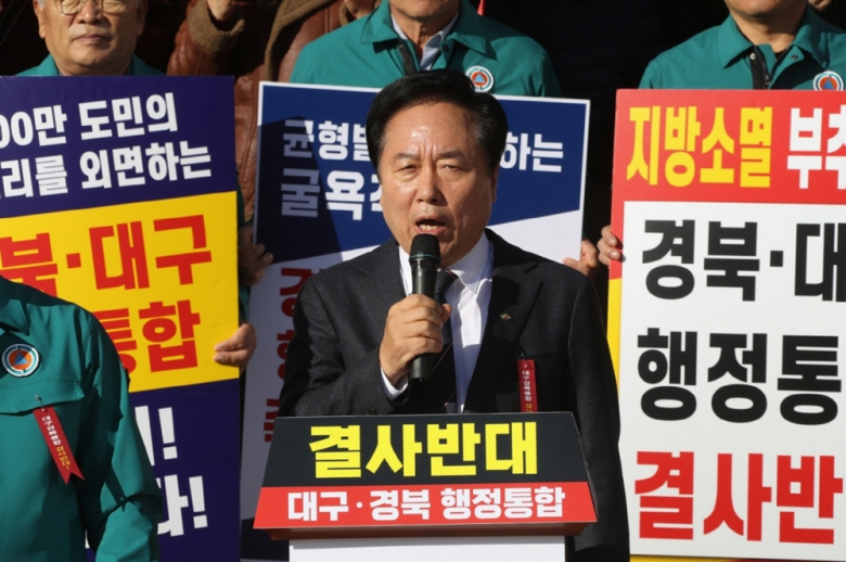 김경도 안동시의회 의장과 강영구 예천군의회 의장도 공동으로 성명을 냈다.양 시·군 의장은 경북‧대구 행정통합은 절대 지방소멸 위기 극복의 해법이 될 수 없다며, 도민의 동의 없는 행정통합 추진을 즉각 중단하라고 강력히 촉구했다.안동, 예천 지역에서는 행정통합에 반대하는 목소리가 점차 높아지고 있다.안동시는 지난 8일과 13일 두 차례에 걸쳐 행정통합을 반대하는 궐기대회를 열었고, 15일에는 경산에서 열린 설명회에 참석해 반대시위를 진행했다.예천군에서는 15일 대구경북 행정통합반대 주민설명회가 열렸다.권기창 시장과 김학동 군수는 "도청 이전이 아직 10년도 지나지 않았는데 주민의 의견 수렴도 제대로 하지 않은 행정통합에 단호히 반대하며, 앞으로 경북지역 시군의 뜻을 모아 반드시 무산시키겠다"고 밝혔다.