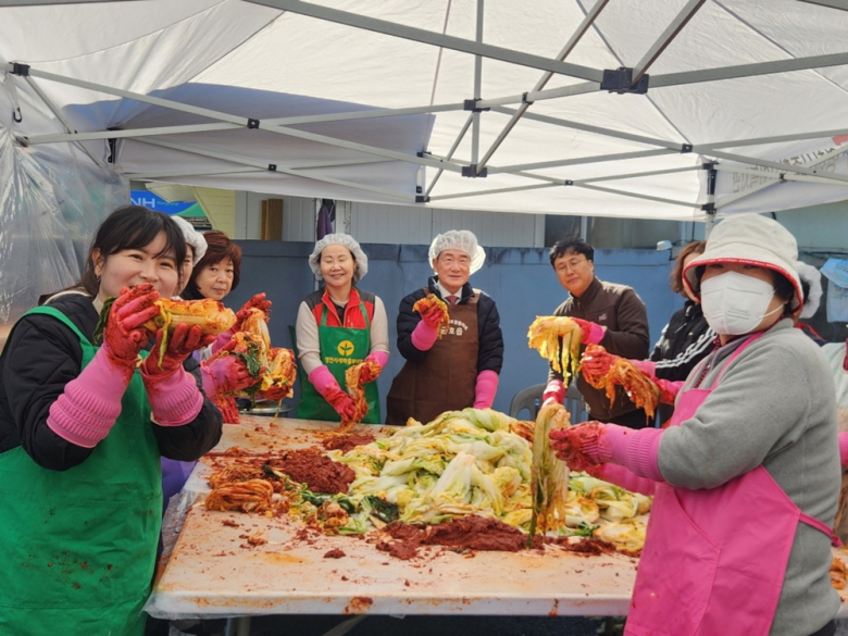 영천시 금호읍 지역사회보장협의체는 15일부터 18일까지 4일간 맞춤형복지 특화사업의 일환으로 ‘사랑담은 김장김치 나눔사업’을 추진했다.이번 사업은 금호읍 지역사회보장협의체와 아름다운 마음들의 모임(이하 아마모) 봉사단체 회원들의 협업으로 진행됐다. 아마모에서 직접 농사지은 배추로 김장한 김치를 저소득 취약계층 50가구에 전달했으며, 재료비 일부는 금호읍 주민들이 모은 ‘함께모아 행복금고’ 적립금으로 추진됐다.4일에 걸쳐 모두가 한마음으로 수확한 배추를 다듬고 절여 깨끗이 씻은 후, 양념에 버무려 정갈하게 담은 김치를 18일 지역사회보장협의체 위원 및 아마모 회원, 영천시종합사회복지관 직원들이 함께 대상자 가정을 직접 방문해 건강과 안부를 확인하며 전달했다.김희주 민간위원장은 “가족 같은 마음으로 정성을 다해 준비한 김치를 맛있게 드시고, 건강하고 따뜻한 겨울을 보내셨으면 한다”고 말했다.이에 손태국 공공위원장은 “이번 김장사업을 위해 뜻을 모아 함께 해주신 모든 분들께 깊은 감사를 드린다”며 “앞으로도 다양한 민관 협력을 통해 이웃을 함께 지켜가는 금호읍이 되도록 최선을 다하겠다”고 밝혔다.