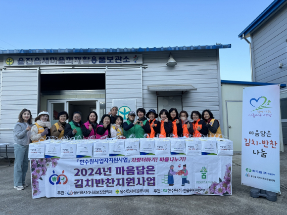 울진군 울진읍 지역사회보장협의체는 지난 25일 관내 복지사각지대 및 취약계층 103가구를 대상으로 ‘마음 담은 김치․반찬지원사업’을 시행했다. 울진읍 새마을부녀회에서 매월 반찬을 직접 준비하고 협의체 소속 단체 회원들이 대상 가구에 직접 방문하여 김치반찬을 전달하는 사업으로 한울원자력본부에서 지원받아 시행하고 있다. 이번 달에는 소불고기, 도토리묵무침, 호박볶음, 메추리알조림, 카스테라, 바이오거트, 영양갱 등을 넉넉하게 준비하여 각 가정에 전달하면서 추워지는 겨울날씨에 어르신들의 건강과 안부를 확인하였다.