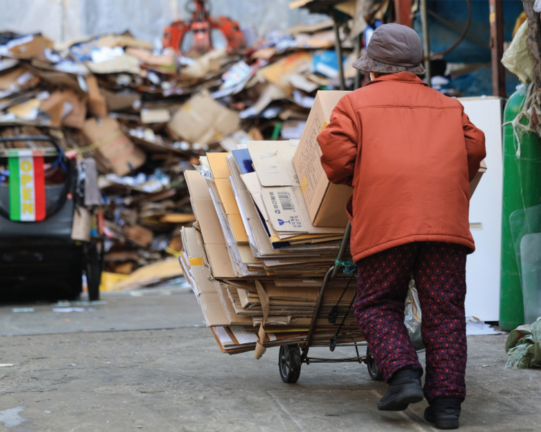 보건복지부에 따르면 2023년 생계 유지 등을 이유로 폐지를 줍는 65세 이상 노인은 4만2000명에 이른다.이들은 일주일에 6일, 하루에 5시간 넘게 폐지를 주워도 한 달에 고작 16만원을 손에 쥐었다.복지부는 지난해 1월부터 지방자치 단체를 통해 지역 내 폐지 수집 노인을 전수조사한 후 이들에게 노인 일자리 등을 지원하고있다.