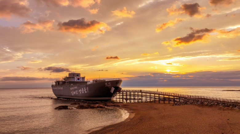 6·25 전쟁의 아픔을 간직한 장사해수욕장. 모래 낱알 하나하나에 스며들어 있어 아름다운 풍경과 역사적인 감흥이 공존한다.