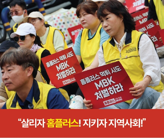 그는 “홈플러스에서는 노동자와 업체, 주민의 삶이 어우러져 살아온 생활이 있었다. 경영진과 MBK의 탐욕으로 이 곳이 망가지고 있다. 국회는 청문회를 어서 열어서 먹튀자본의 횡포에 대한 책임을 물어야 한다.”며 국회에게 MBK청문회 시행을 촉구했다.
